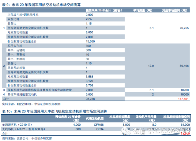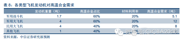 綜(zong)上(shang),我們預計每臺戰(zhan)斗機航空發動機平(ping)均使(shi)用高溫合金(jin)5.1噸,軍(jun)用運輸機航空發動機用高溫合金12噸,其(qi)他(ta)軍用航(hang)空發動機高溫合金2噸;民用大飛機航空發動(dong)機用高溫合金8噸。