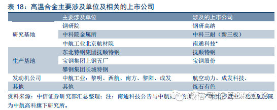 主要涉及的A股上市(shi)公司包(bao)括:鋼(gang)研(yan)高納、撫順特鋼(gang)、寶鋼(gang)股份、煉石有色、航空動(dong)力(li)以及新三板上市(shi)公司中科三耐(nai)。