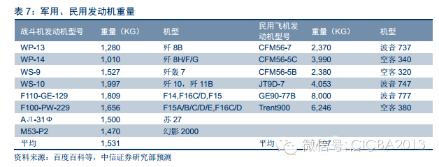 假設(she)2:通(tong)過(guo)與(yu)已有國內外(wai)相(xiang)似型號飛機(ji)發動機(ji)規格對(dui)比,我們假設軍用戰斗(dou)機(ji)發動機(ji)重量約1.7噸,軍用運(yun)輸機、民用大飛機發動(dong)機重(zhong)量(liang)約4噸,其他(ta)飛機航空發動機重(zhong)量約1噸。